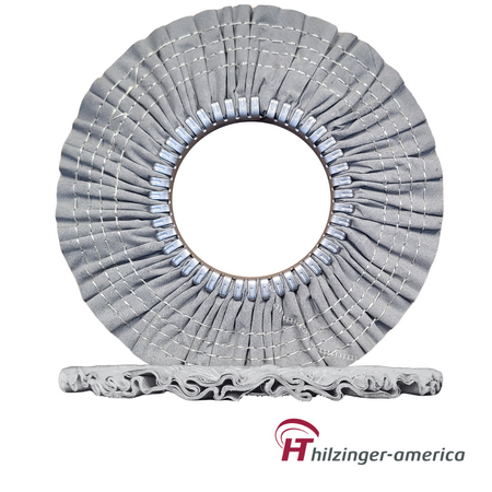Made with Hilzinger's firmest mill-treated cloth, these buffs are best suited as heavy cutting wheels in challenging areas. High-density cloth sewn at a 3/8" concentric stitch for added firmness.
