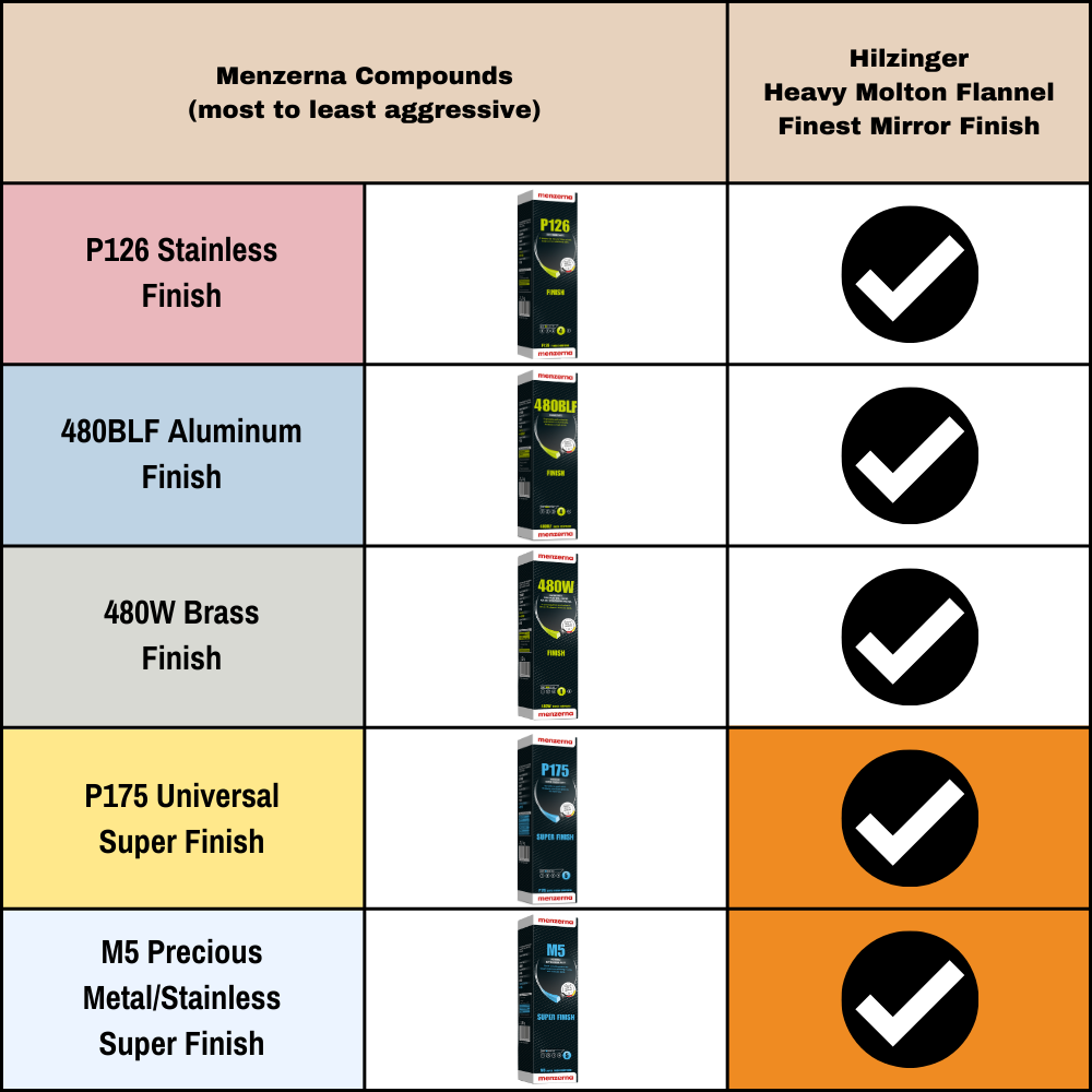 Hilzinger-Thum has been making buffing and grinding tools for over 120 years and is one of the few companies recommended by Menzerna for buffing wheels. Using the highest quality raw materials available, Hilzinger America in Ohio continues their tradition by producing customized buffing wheels for Spectrum.