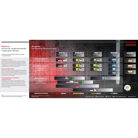 Menzerna has developed polishing compounds for over 135 years and is the largest manufacturer of solid compounds globally; they also produce automotive polishing compounds, gelcoat polishing compounds, and other chemicals to aid in refinishing and protecting coated surfaces.