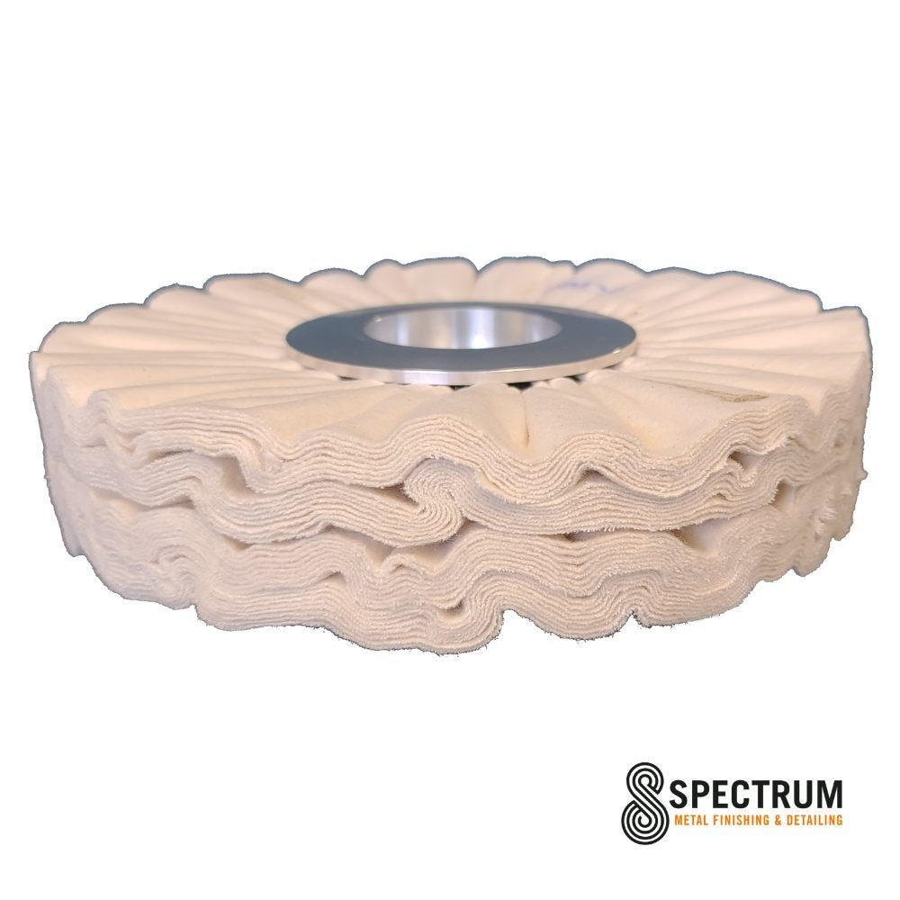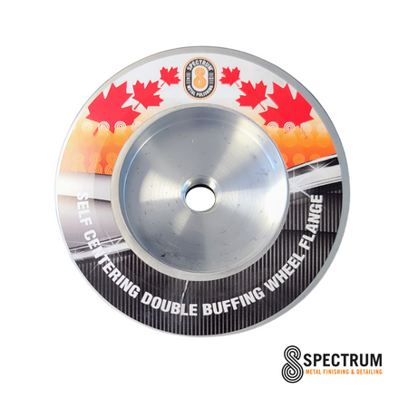 Recommended for: Finishing and light cutting. For typical cut polishing with 3" center buffing wheels, we suggest our standard Self-Centering Safety Flange . To use buffing wheels with a 5″ center, you will need the XL Self-Centering Safety Flange.